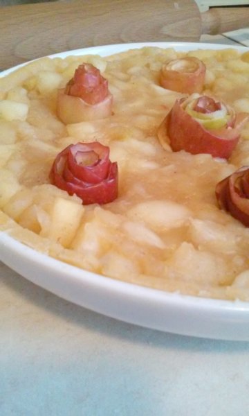 Imádok a Pinteresten vadászni 🙂 Húsvéti dekorációk után kutattam, amikor szembe jött velem az almás pite rózsás változata. Na jó, ott teljesen berakták az almahéjakkal a tetejét, de szerintem ahhoz több almát kell pucolni, mint amennyit töltelékként felhasználunk a pite formába. Legalábbis nálam így alakult, és mivel előtte egy szülinapi tortát készítettem el, nem akartam tovább bíbelődni… ez most ilyen diszkrét lett 😀 de kipróbáltam, élmény volt 🙂